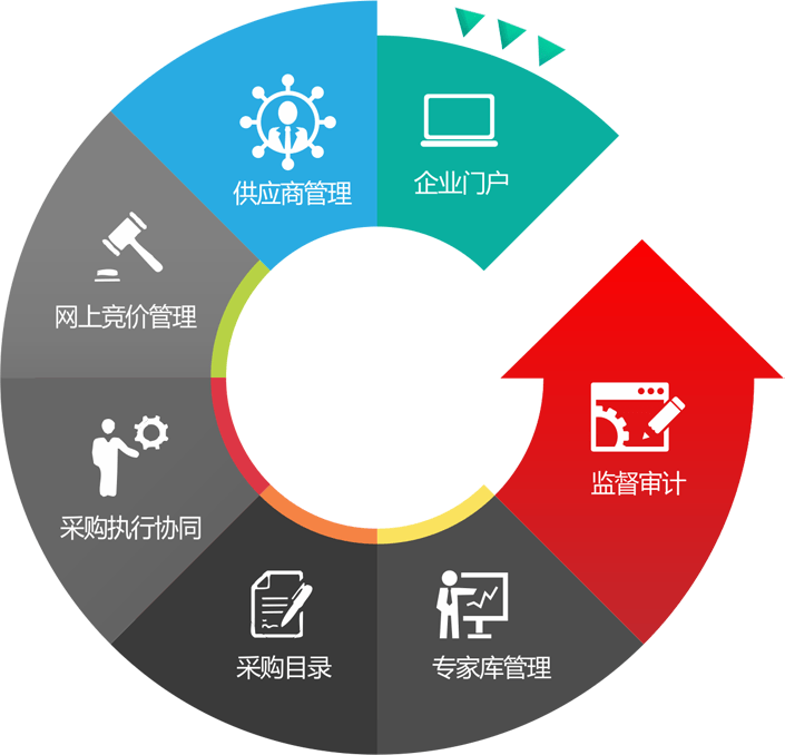 门户内容包括首页、采购组织与对象、政策法规、供应商自助、服务中心等,实现采购信息的统一发布,以及企业内部与供应商之间的互联互通。
