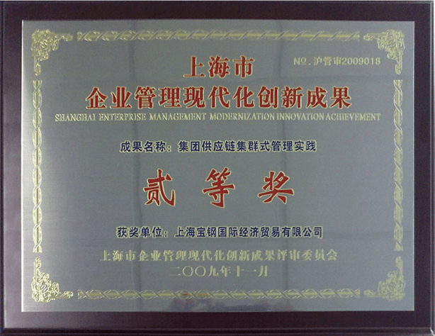 2009年11月,由宝思公司承建的供应链集群系统开发与实施项目荣获上海市企业现代化管理创新成果 二等奖