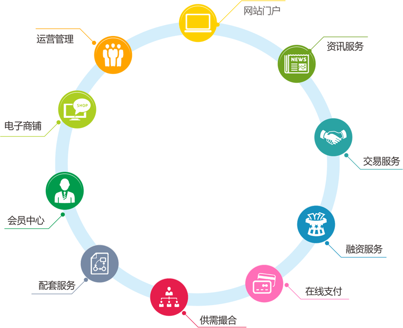 宝思第三方电子商务平台主要涵盖网站门户、资讯服务、交易服务、融资服务、在线支付、供需撮合、配套服务、会员中心、电子商铺、运营管理等应用模块。第三方电子商务平台实现了网上商流、信息流、资金流和物流的贯通,有效地解决企业间贸易合同履约问题,为交易用户开辟更加高效、公平、公正的网上交易新渠道。